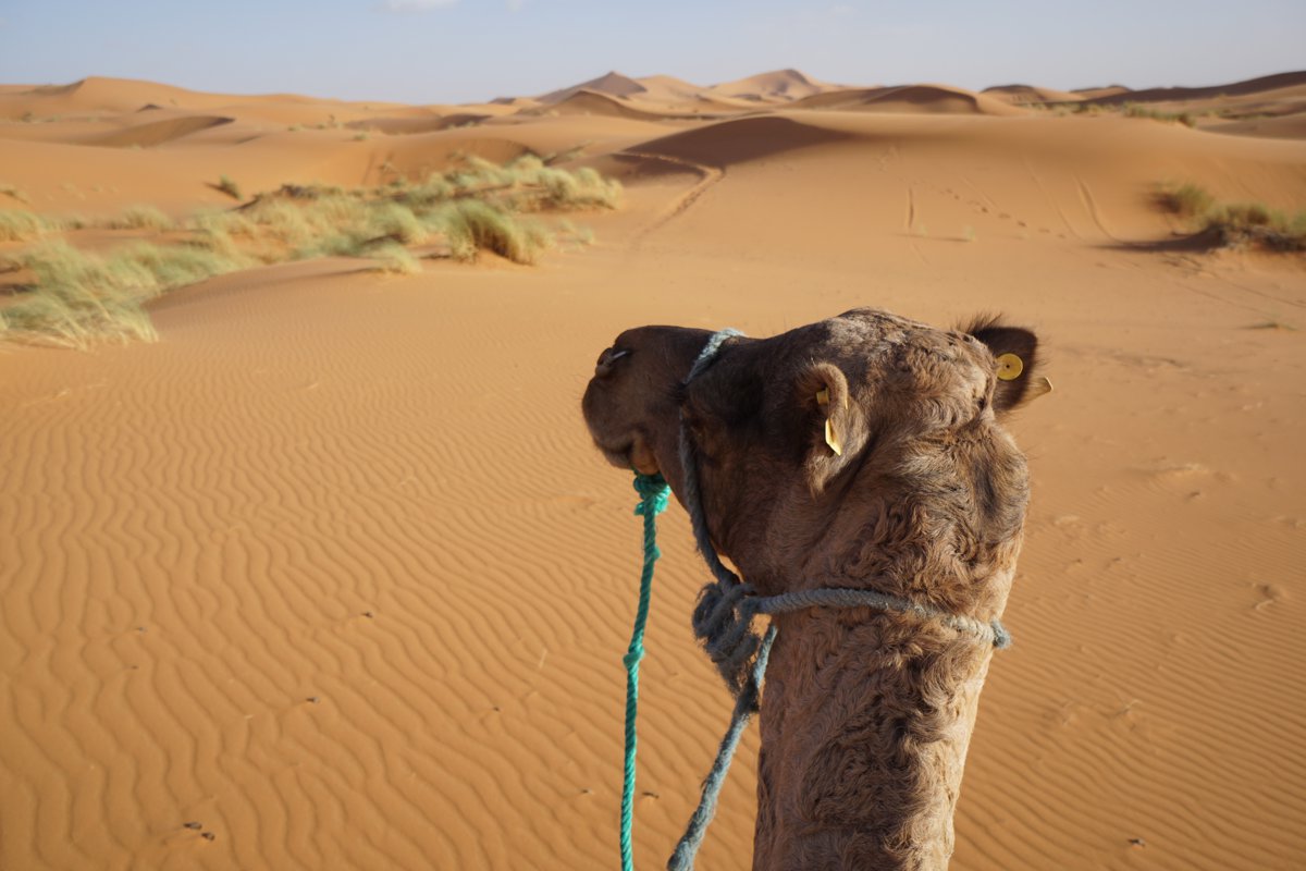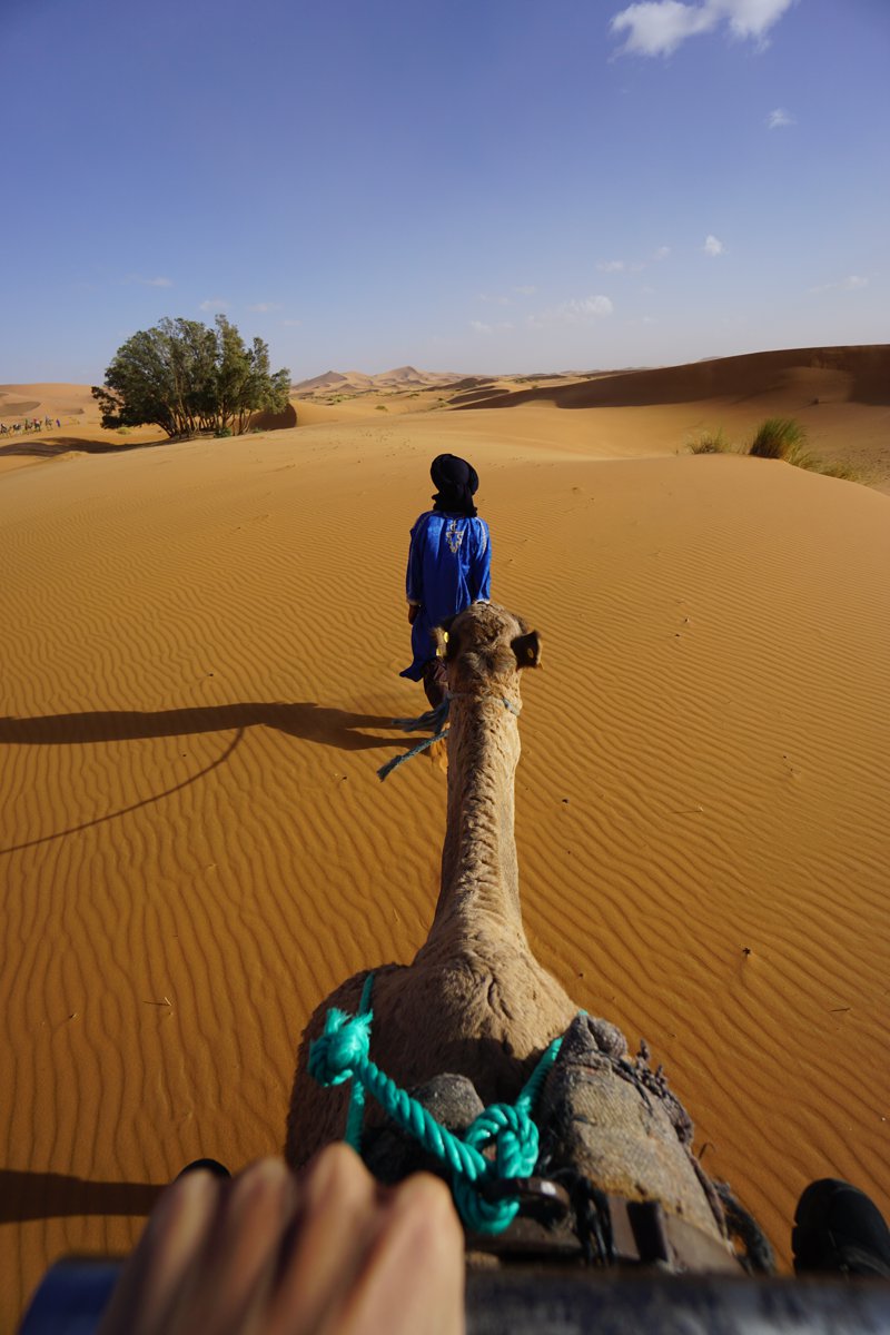 宿からサハラ砂漠のテント村までラクダで行きました。1時間ぐらい歩いてた気がします。酔ったのと、ケツが痛くて大変でした。