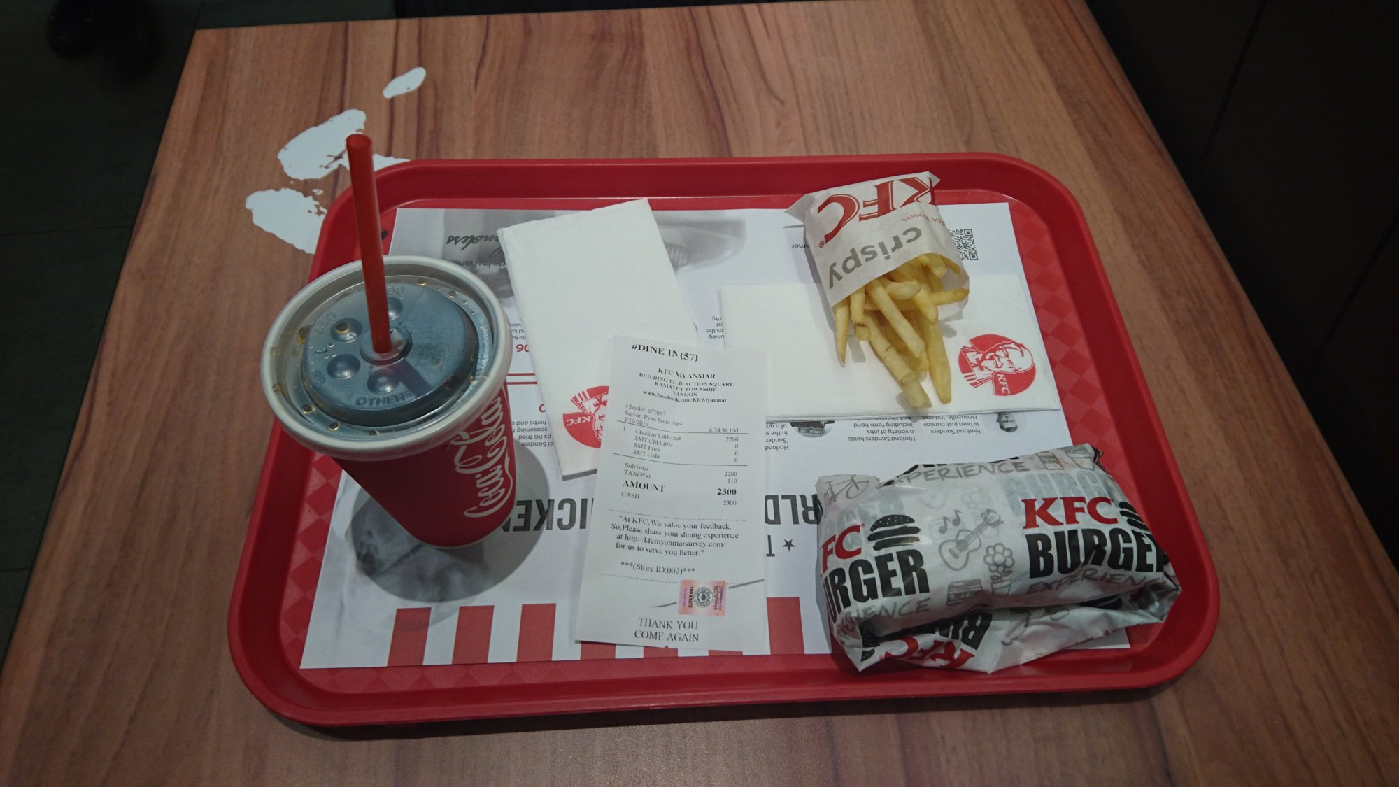 ヤンゴンにはまだあまり海外のファストフードはないが、 いくつかケンタッキーフライドチキンはある。