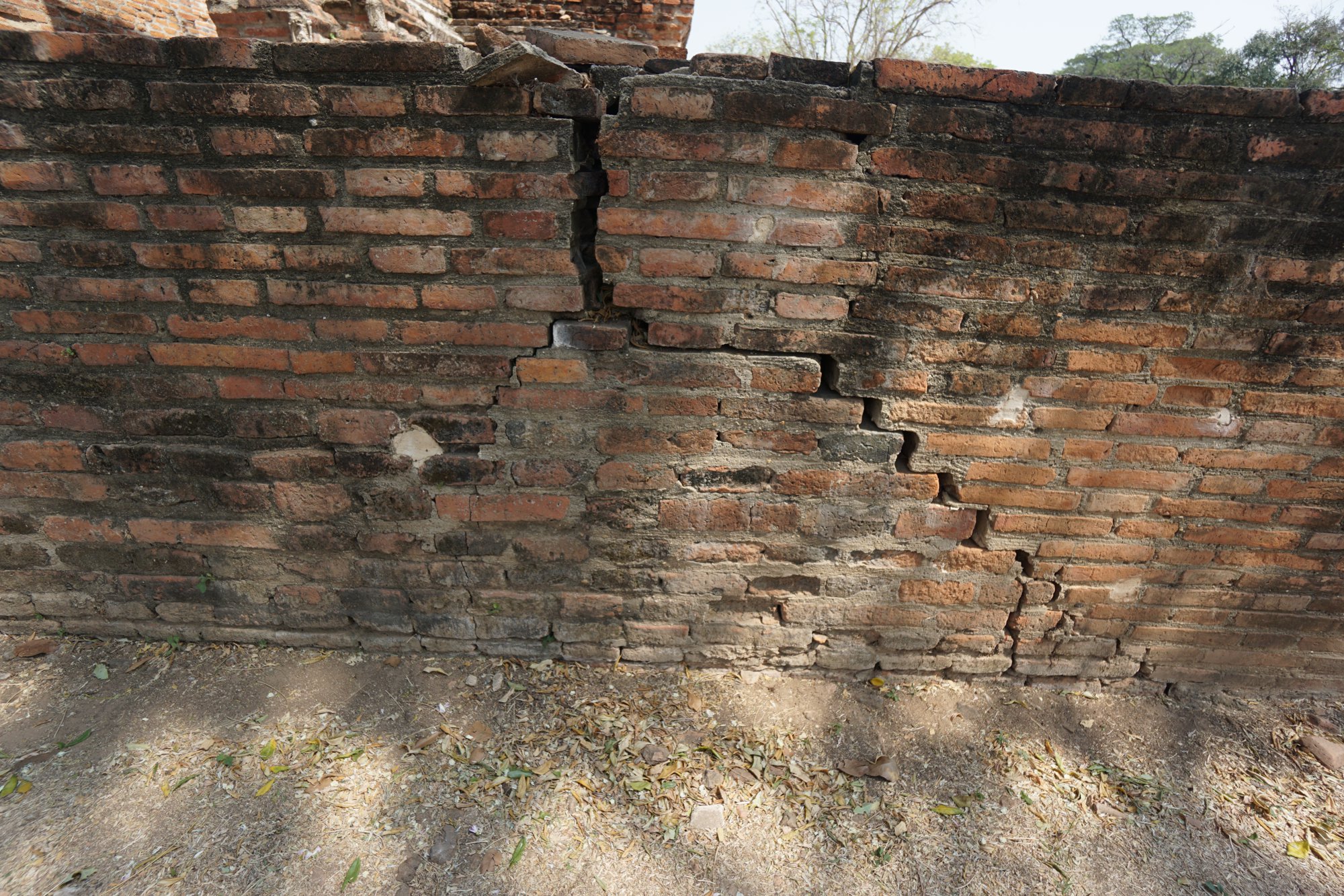 壁に限らずアユタヤ遺跡群に残っているものはどの程度補修されているのか わからないが、あちこちが崩れたりしそうで結構こわい。
