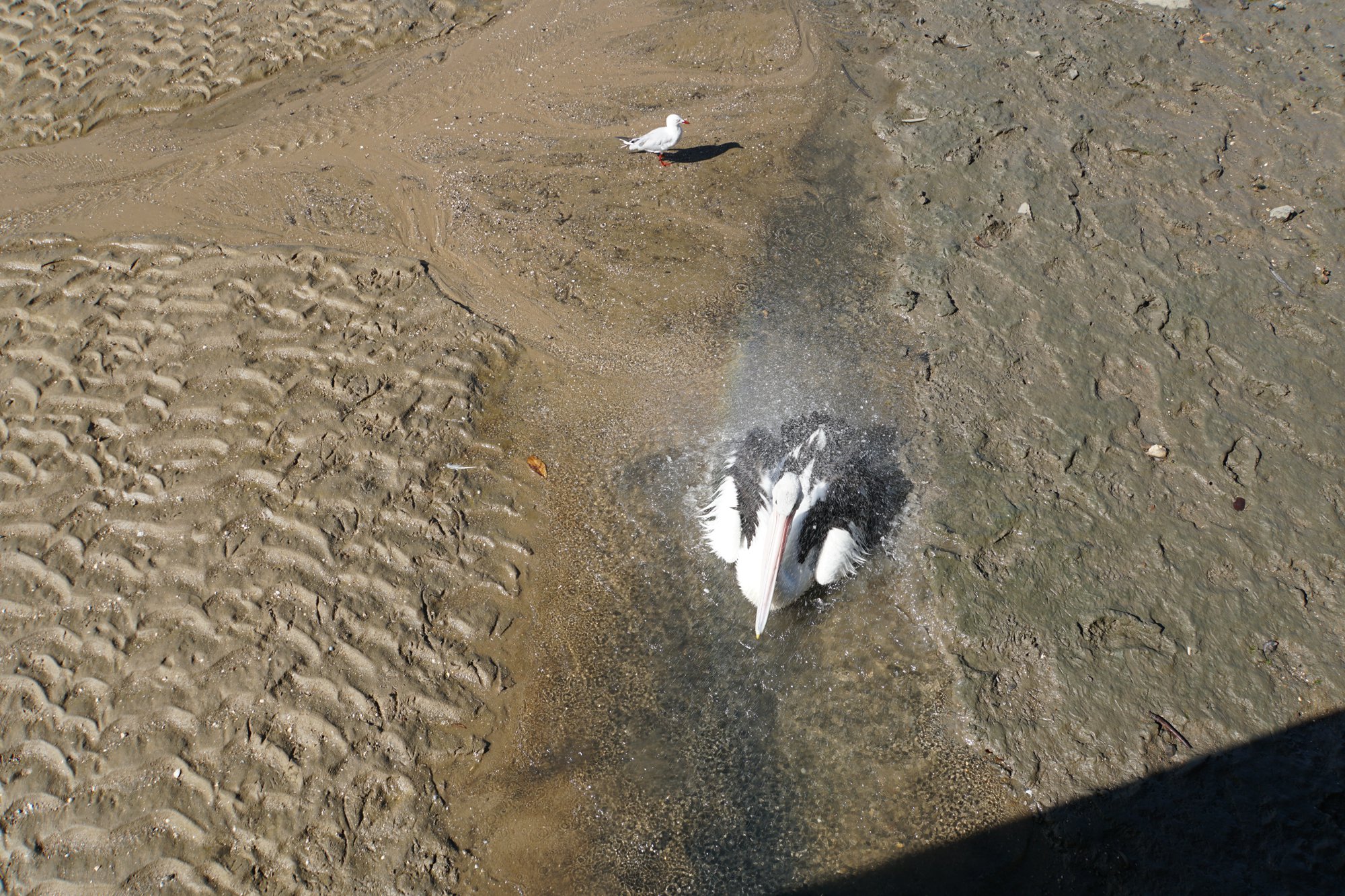 しかもバシャバシャと水浴びをしながら餌を取るものだから、だいぶ魚も逃げていく。