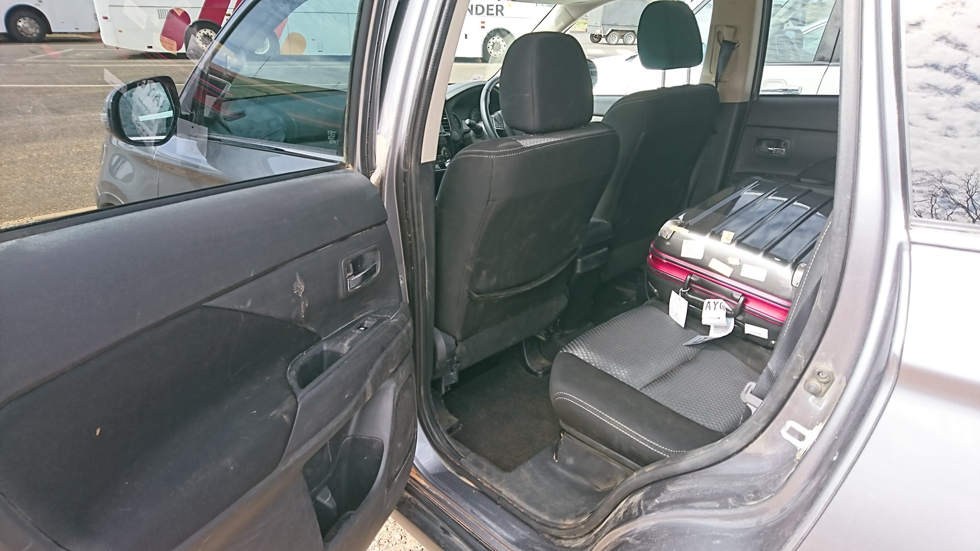 ハーツレンタカーで借りた三菱自動車の車。車内がめっちゃ汚かった。