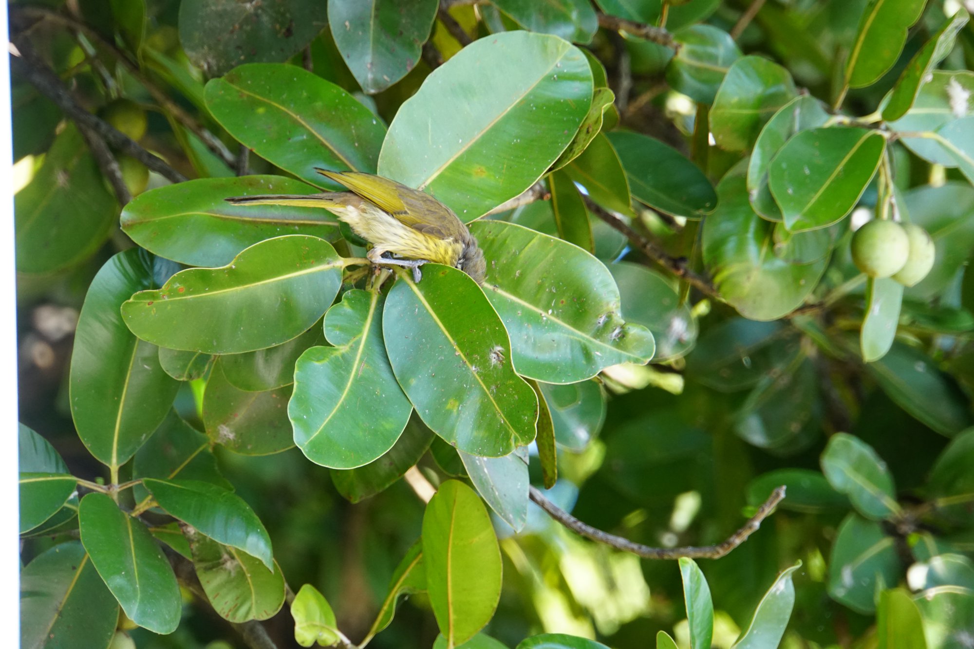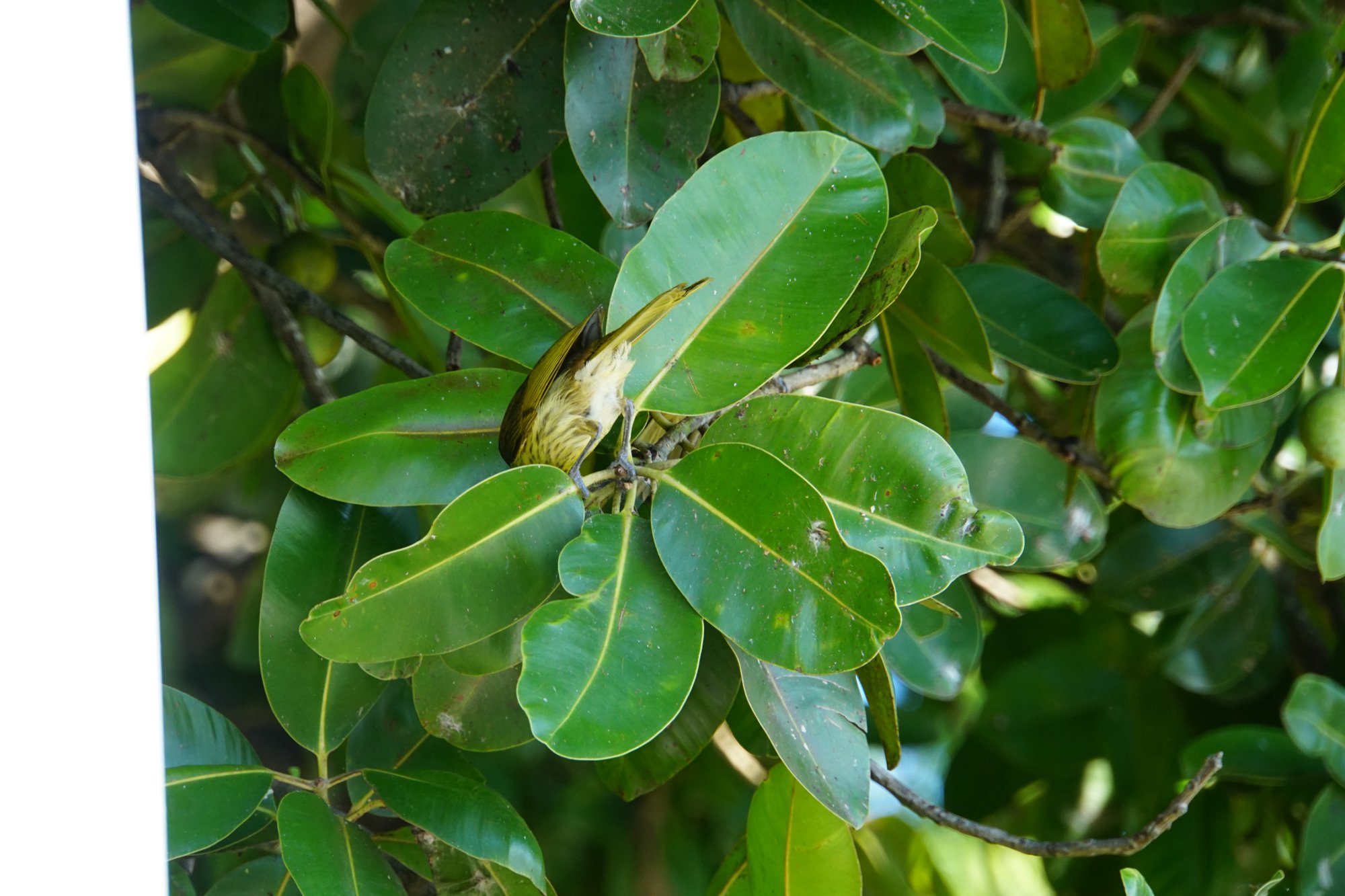 木の実か何かを目当てに来ているようにも見えたが、どうも葉っぱの表面ついている虫か何かを食べているようにも見える。