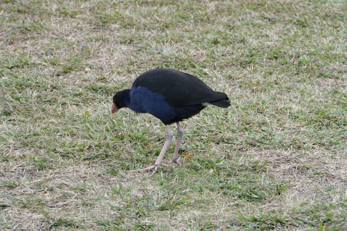 ニュージーランド固有種のプケコという鳥。 ホテルの周りの草むらにたくさんいた。
