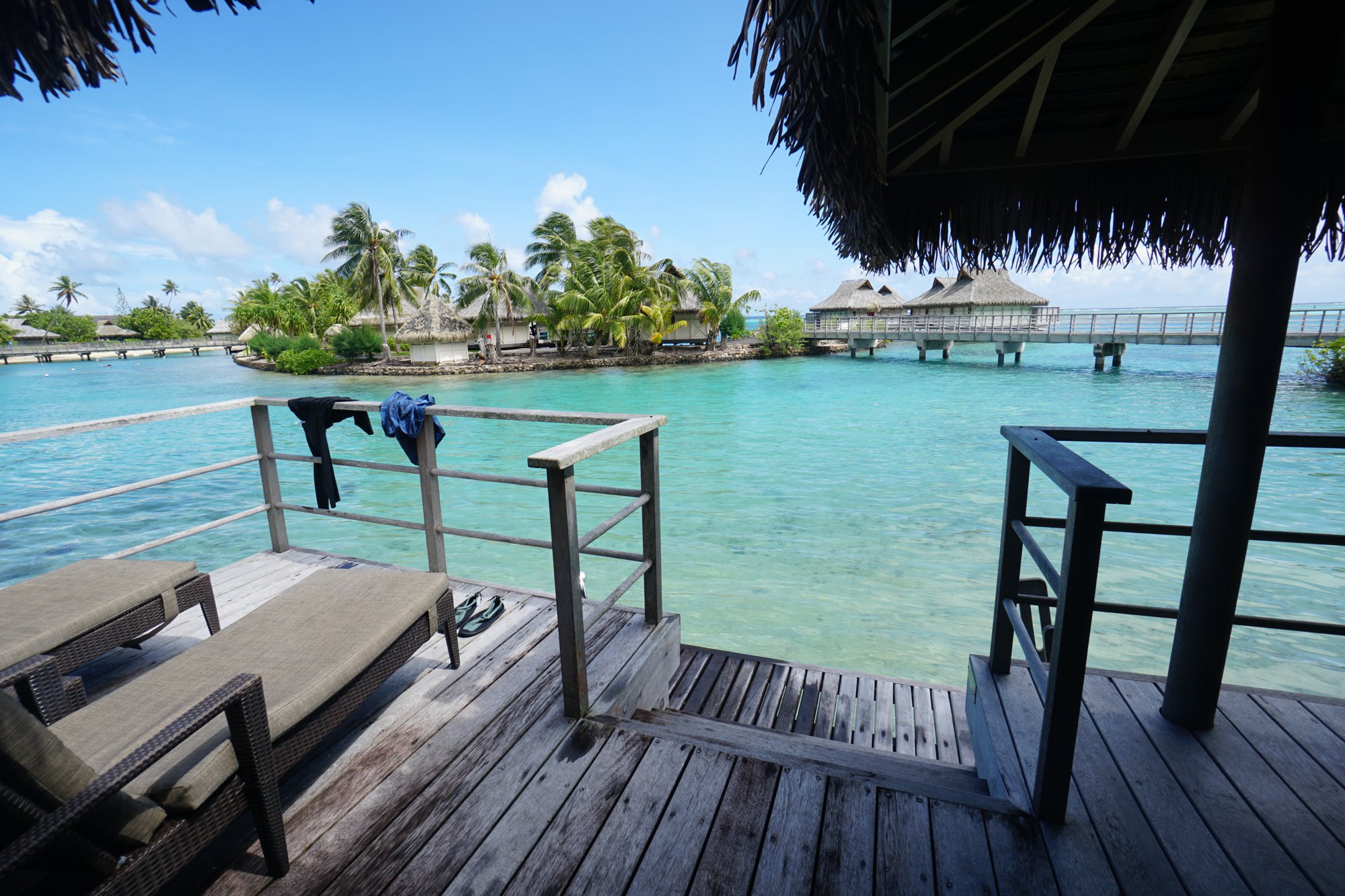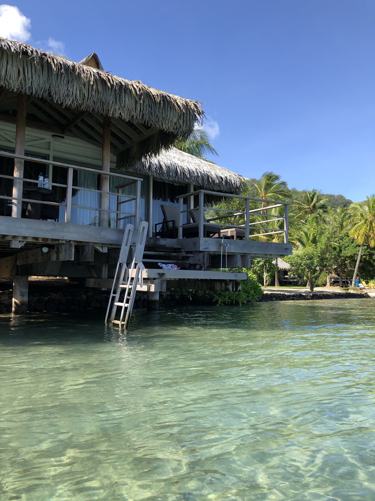 水上コテージのデッキ