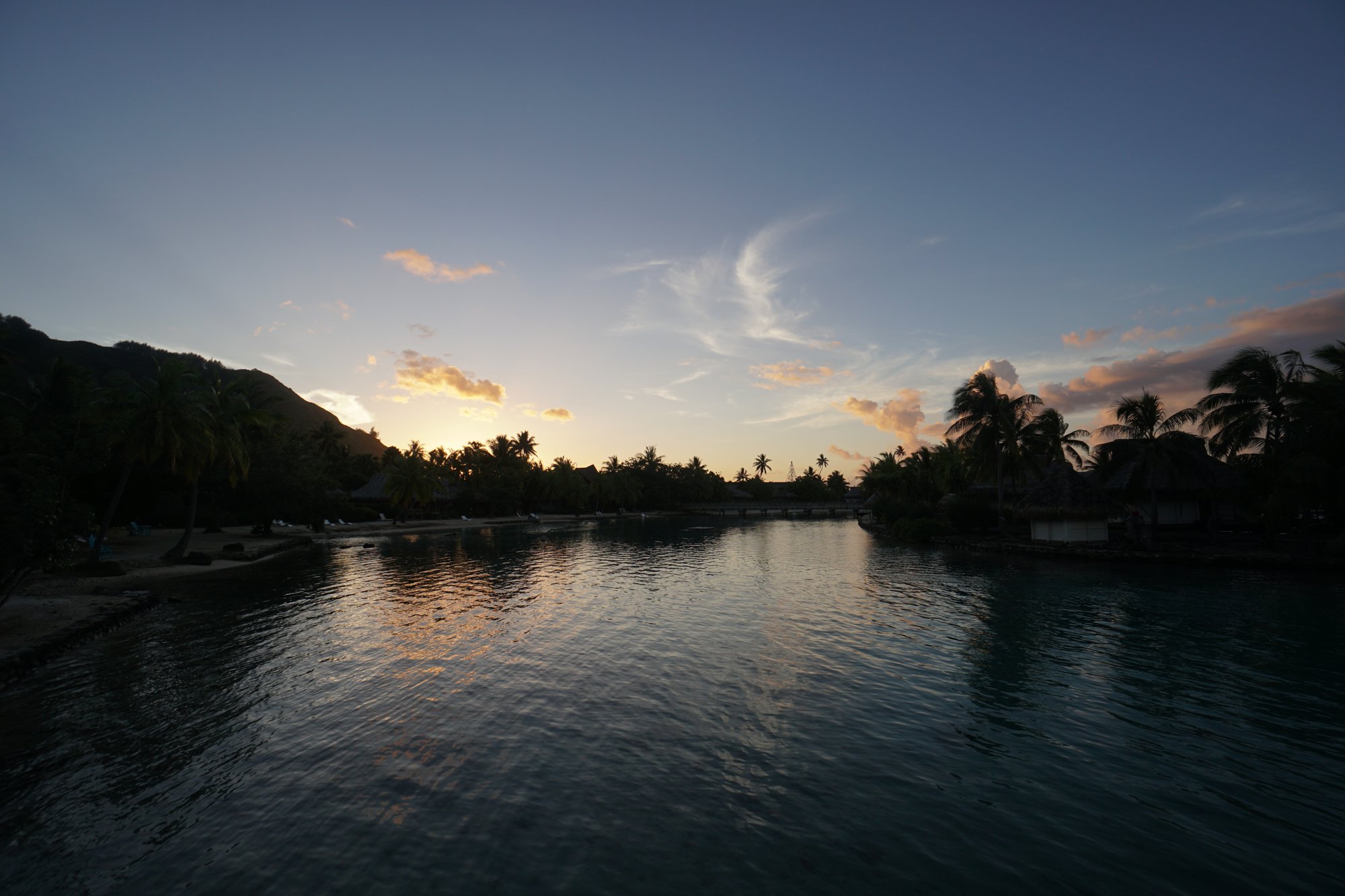 夕焼けと水上コテージ (インターコンチネンタル・モーレア)